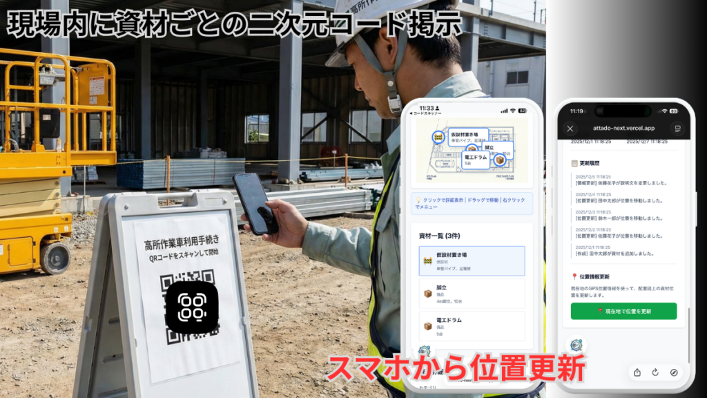 スマホの位置情報を利用した簡易資材位置管理アプリ『AttaDo』