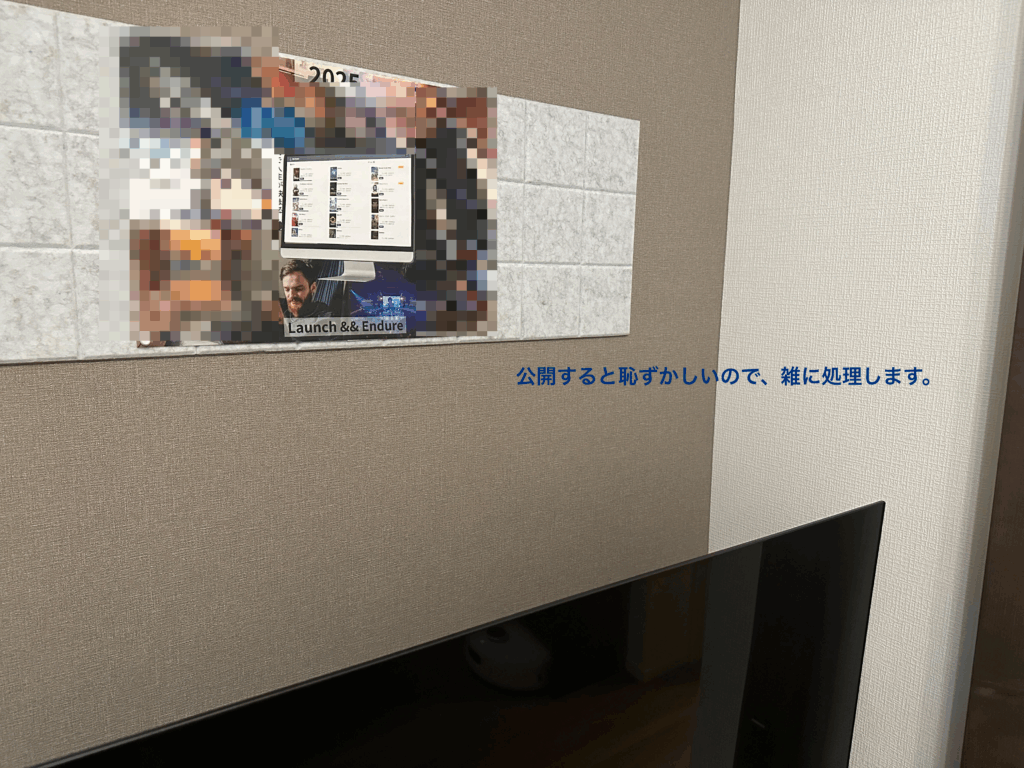 ビジョンボードは毎日チラッとでも目に入るようにトイレ、TVの上に掲げました。毎日じっと眺めていたわけではありませんが、生活なのかで何度も目に入りました。